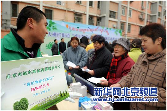 新华网北京频道3月19日电(陈虹)北京市大栅栏街道19日举行“废旧物品公益行”主题活动,组织居民进行现场物品回收、日用品换购、现场捐助。
