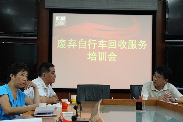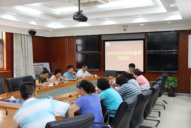 2013年8月7日,北京市城市再生资源服务中心在大栅栏街道办事处举办了,“废弃自行车回收处理服务”培训会,会上北京市城市再生资源服务中心区县管理部杨国宪主任就下一步开展的废弃自行车回收处理服务工作进行了培训。大栅栏街道城建科公祥文副科长及九个社区居委会负责人、志愿者参加了培训会。