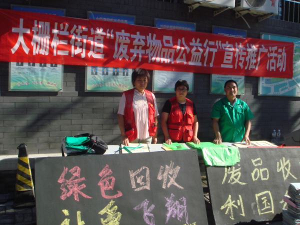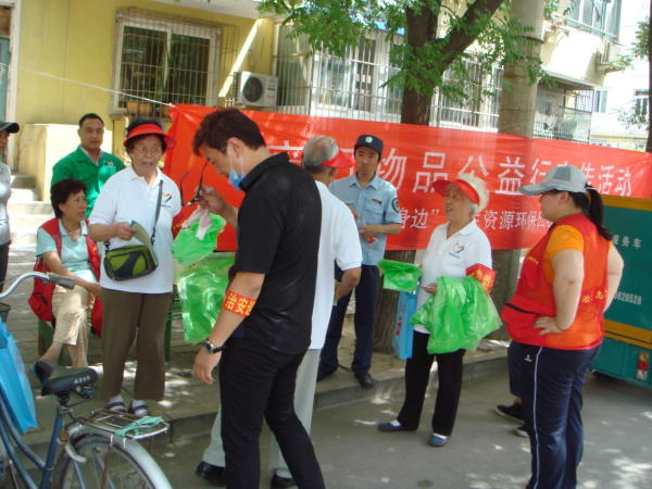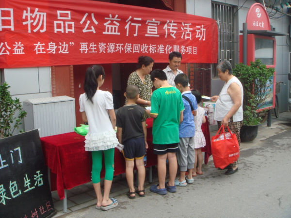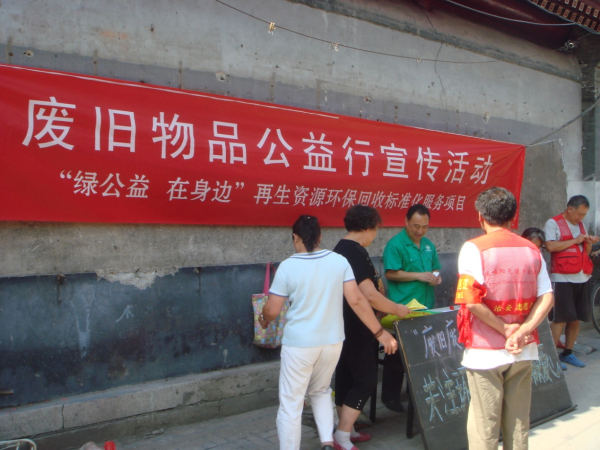 废旧物品公益行活动是西城区文明、大栅栏街道办事处、北京市城市再生资源服务中心共同举办的服务民生公益再生资源环保回收宣传活动。在此活动开展4个月之际,我中心结合落实2013年市级府购买服务项目“绿公益,在身边”再生资源环保回收标准化服务项目,于2013年7月16日,开展系列环保回收宣传活动,首先在三井社区,依次是石头社区、铁树社区、大栅栏西街社区、石顺社区、延寿社区、煤东社区、西河沿社区、和大安社区开展。大栅栏街道办事处和社区居委会相关领导给予了大力支持,社区居民对公益再生资源环保回收,表现出了前所未有的热情,纷纷踊跃参与,甚至自愿无偿捐赠,奉献爱心。