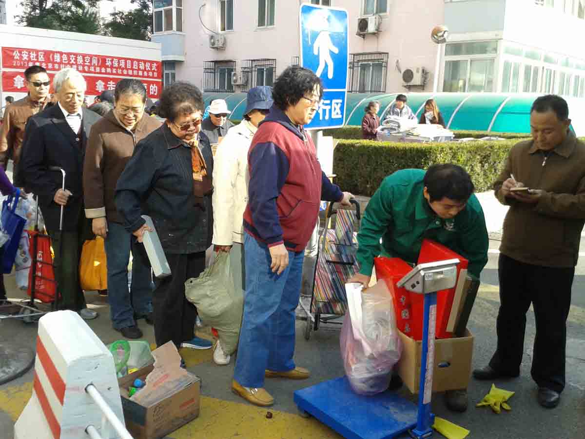 2013年10月25日上午,在公安社区由北京市城市再生资源服务中心与绿色啄木鸟共同开展的再生资源回收活动,现场向居民介绍可回收资源的类别,及以物换物的形式鼓励居民对可回收的再生资源进行分类,以实现垃圾资源化、减量化、无害化。原定于9点半开始的活动,居民9点就开始自觉的排起了队伍,居民的参与热情很高,虽然短短的2个小时,回收了很多东西,可见居民对垃圾减量垃圾分类的重视。北京市城市再生资源服务中心将持续性的开展各种公益活动,引导居民参与环保奉献爱心。
