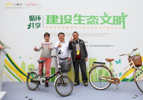 4月20日,北京市城市再生资源服务中心、共享单车的原创者、领骑者ofo小黄车与北京万科、中国循环经济协会、共同达成“城市存量自行车循环共享计划”的战略合作,推动废旧自行车循环再生利用,减少城市自行车整体的保有量,提升闲置资源的效率,节约城市公共空间。