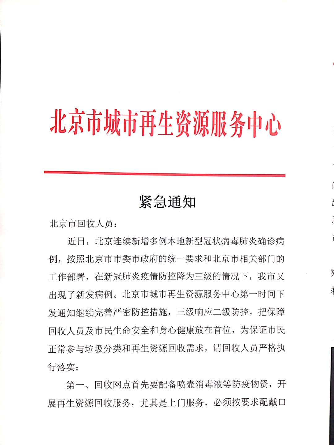 >> 北京市城市再生资源服务中心回收人员紧急通知