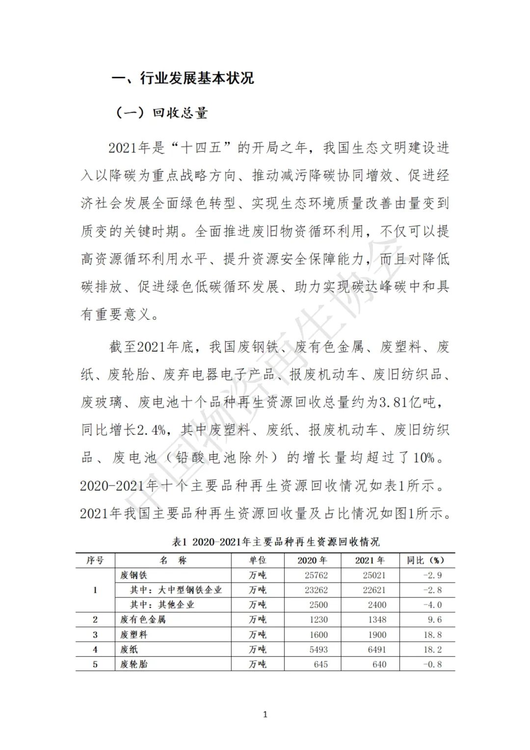 中国物资再生协会正式发布:《中国再生资源回收行业发展报告(2022)》