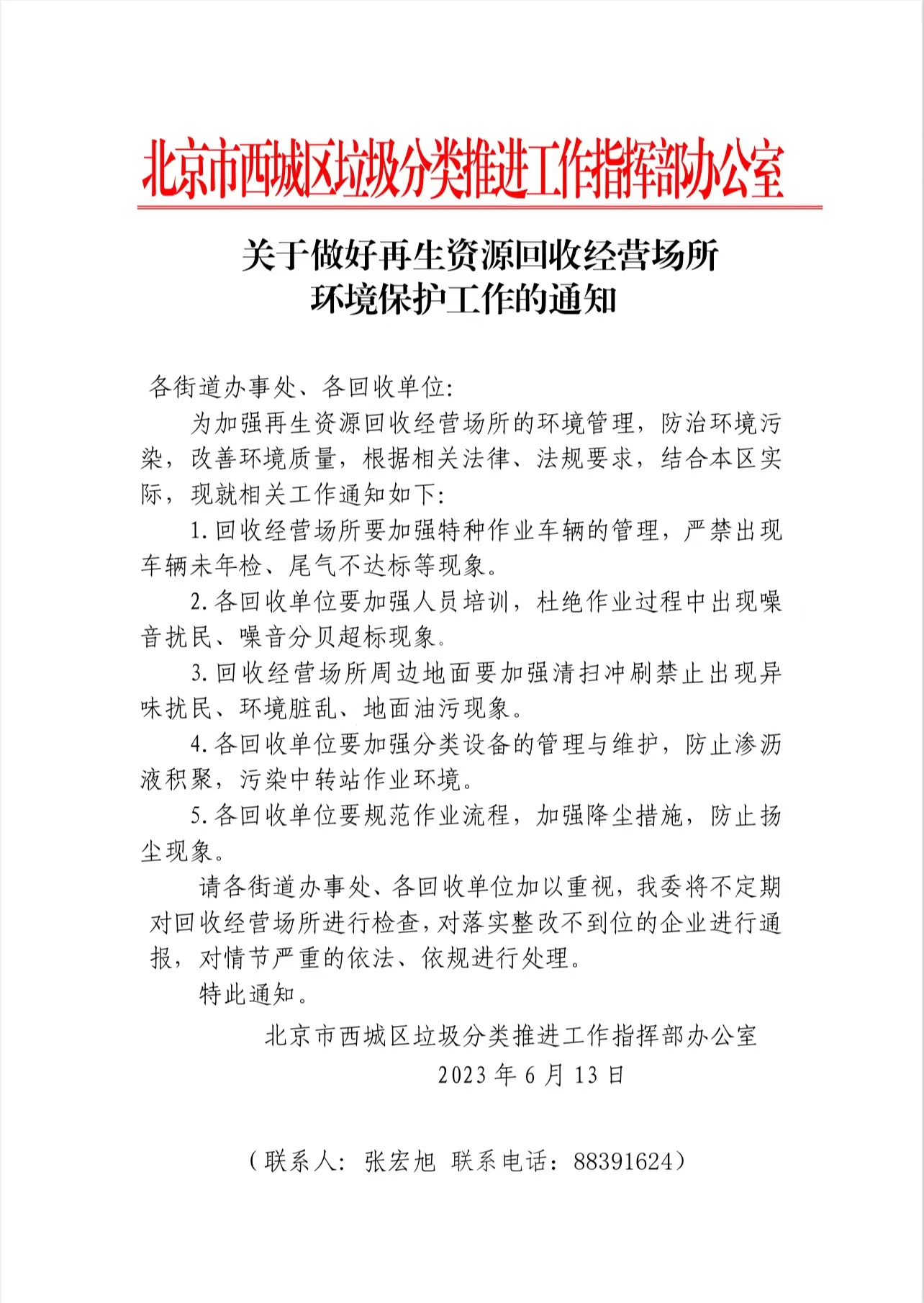 >> 关于做好再生资源回收经营场所环境保护工作的通知